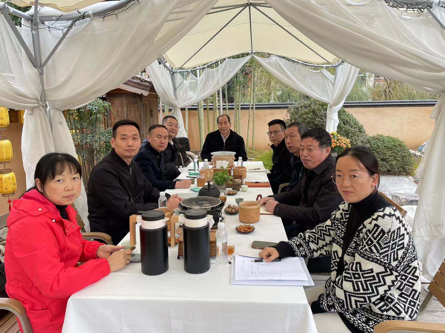 江蘇夢得新材料科技有限公司2023年11月核心層會議在鎮江唯一一家黑珍珠的“松廬·茶寮”進行圍爐煮茶。選擇松廬的靈感,來自於(yú)黃公望的《富春山居圖》下卷《無用師卷》小溪旁的一座草廬。松擁千百年來文人推崇的氣節,堅韌不屈;廬爲古代文人墨客栖所,簡單質樸;呈現遠離塵世喧嚣,回歸平淡至真的雅緻生活。這也吻合瞭(le)江蘇夢得在公司精神文化屬性上的積極追尋。