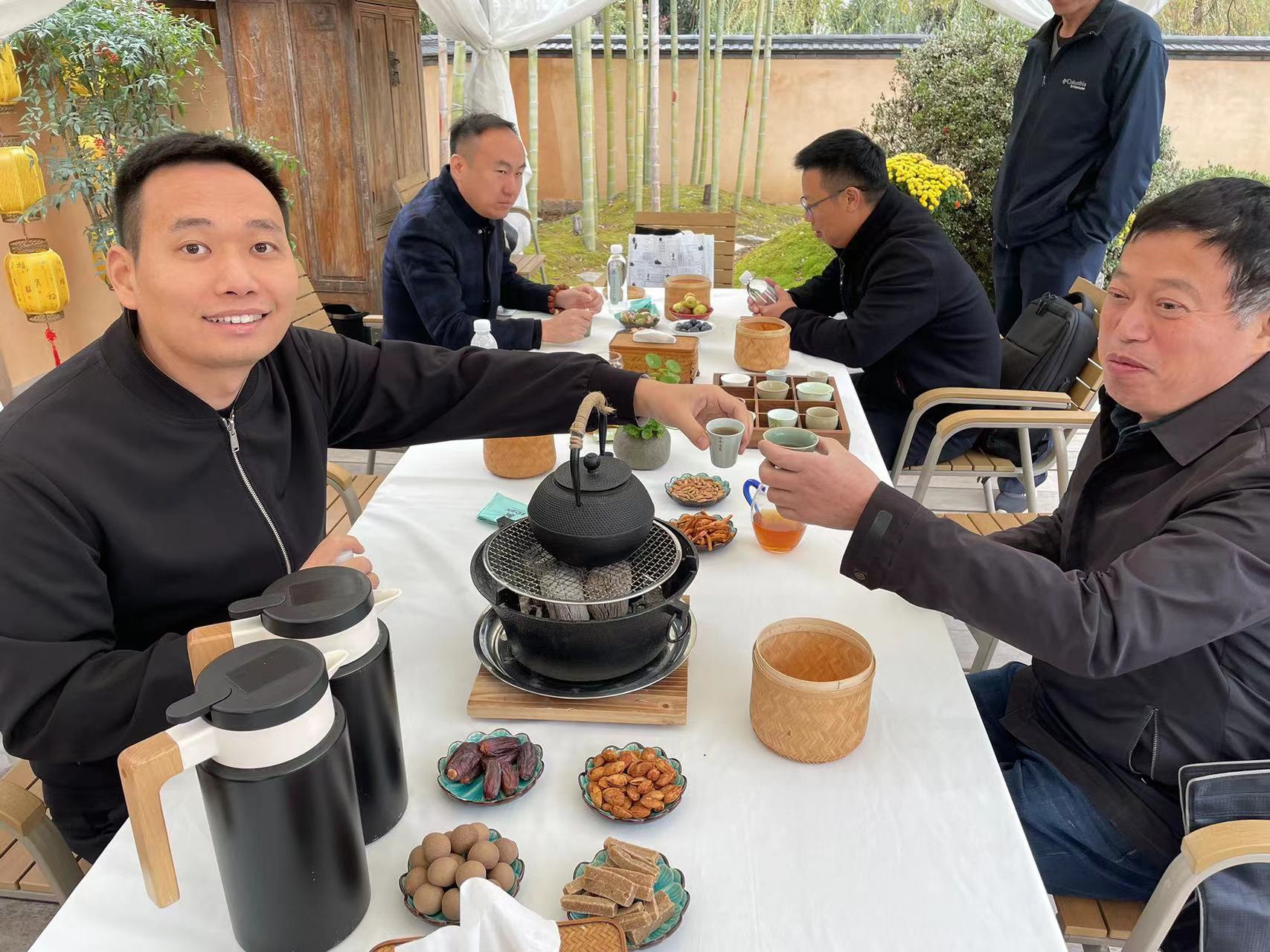 會議進行的同時,大家圍爐而座,品茶而談,眼裏是花繁草茂滿園的華麗,是翠竹落英山石的雅緻,是魚戲綠波花濃的和諧,是出水芙蓉連天的古典。大家都沉浸在這樣典雅的氛圍中,積極的響應會議的議題,參(cān)與讨論,充分的表達瞭(le)自己的想法。江蘇夢得2023年11月份的核心層會議也在這樣熱烈愉快的氛圍中,落下瞭(le)帷幕。