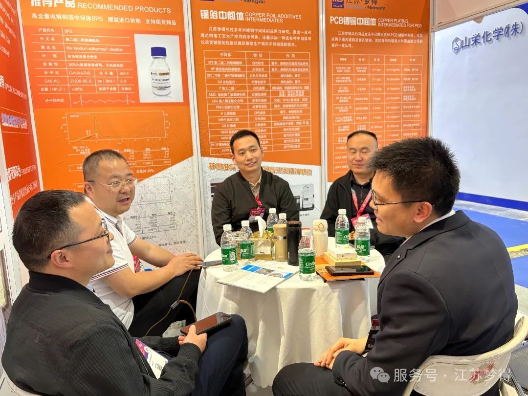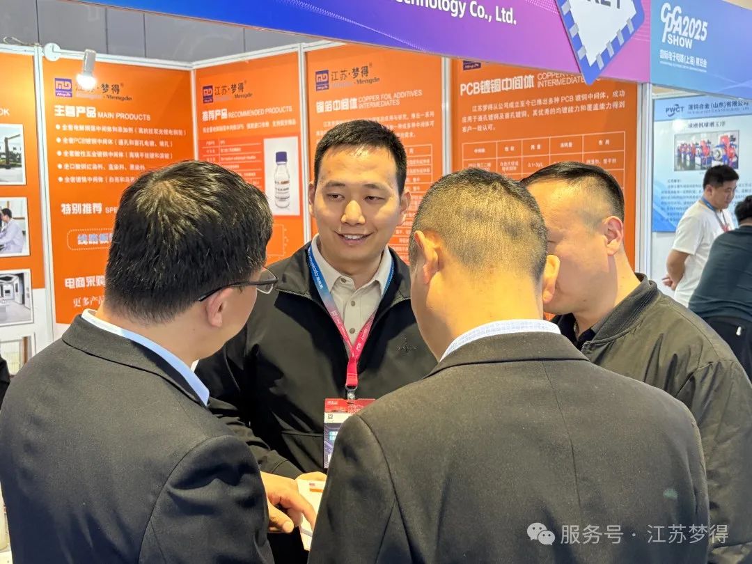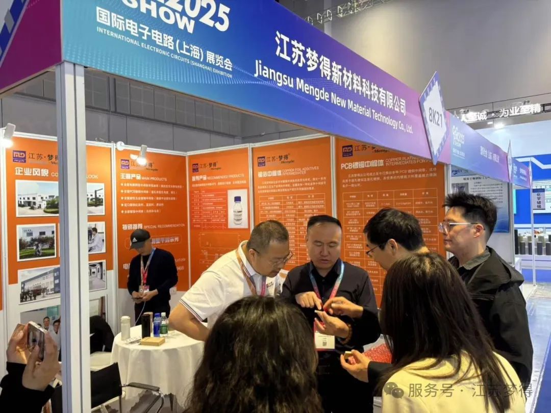 展會期間,江蘇夢得新材料科技有限公司的展位吸引瞭衆多專業觀衆與行業人士的駐足。我們展示瞭公司在電鍍新材料研發、電鍍添加劑生産與銷售等領域的創新成果,包括具有行業領先水平的晶粒細化劑與整平劑結合産物,在電鍍工藝多個環節有著出色表現的産品,如在線路闆鍍銅工藝中提高鍍液分散性能、促進銅優先沉積在銅孔中間;在電鍍硬銅工藝中顯著提升鍍層硬度;在電解銅箔工藝中作爲高抗劑提高銅箔抗拉強度 。這些産品憑借其卓越的性能和可靠的質量,受到瞭現場觀衆的高度關注與認可,衆多客戶表達瞭進一步合作的意向,期待在未來共同開拓市場。
