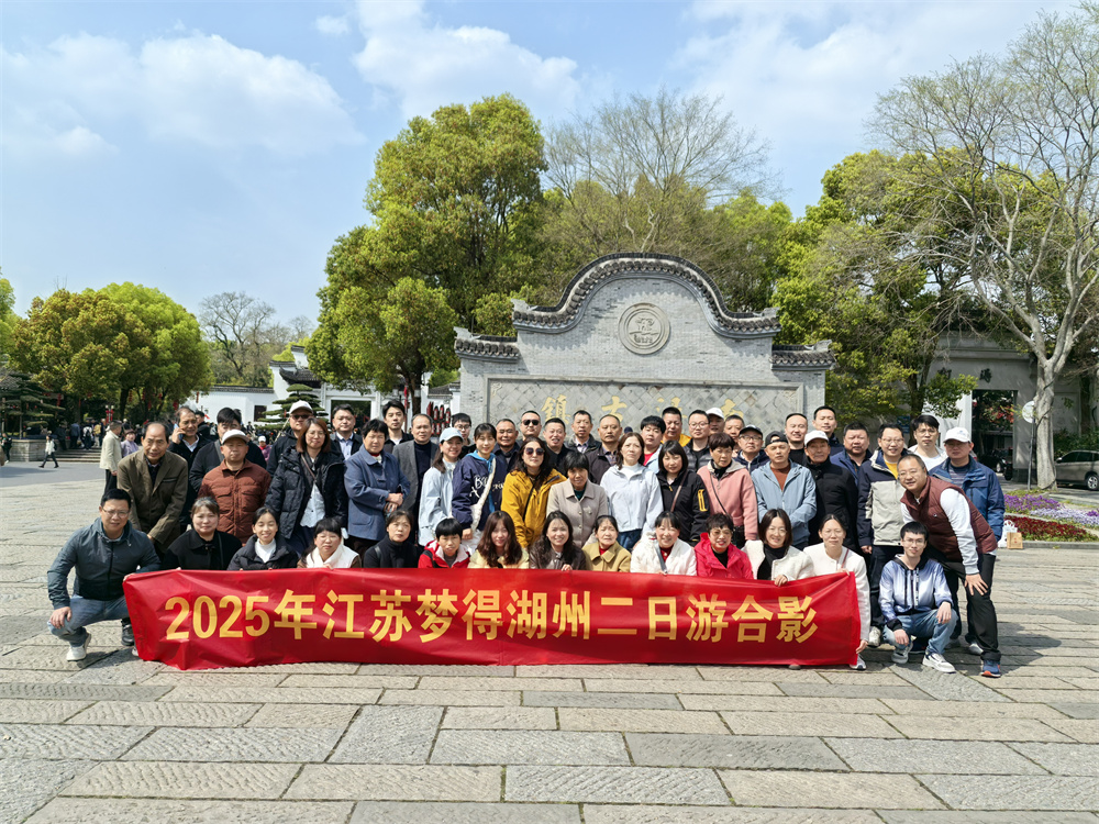 每一次旅行都是一次心靈的洗滌,每一次旅行都是一次對未知的探索。用腳步丈量世界,用心靈感受生活。在喧嚣塵世之外,有一片淨土,溫柔的召喚著(zhe)每一顆甯靜與美好的心。湖州,一個讓人心靈得以栖息的夢幻之地,正緩緩拉開它的神秘面紗!江蘇夢得新材料科技有限公司於3.30日組織瞭(le)2025年度公司旅遊----湖州二日遊。