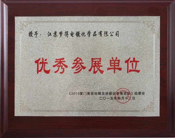 此次展會之行我們收獲良多,同時榮獲由《2015廈門表面處理及塗裝設備(bèi)展覽會》組委會頒(bān)發的“優秀參展單位”獎牌。
