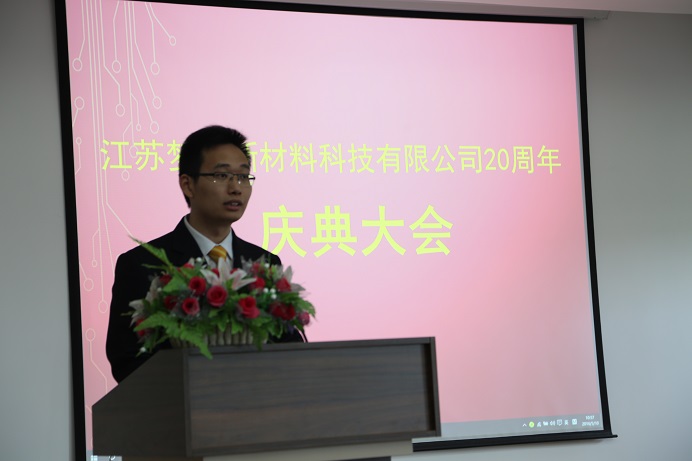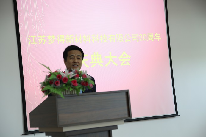 一段精彩的舞龍表演結束後,在公司三樓會議大廳召開瞭(le)一個簡短的報告大會。杭冬良董事長、杭康總經理、江蘇表協會長林益庭、中國企業家思想俱樂部秘書長於(yú)彥忠、中國印制電鍍行業協會名譽秘書長王龍基分别上台緻辭。杭冬良董事長在緻辭中回顧過去創業艱辛,暢談當前大好形勢,描繪未來美好前景,感謝丹陽各級政府部門的正確領導、各位合作夥伴的大力支持以及各位員工辛勤的工作,堅信夢得在下一個20年一定會更加輝煌;杭康總經理潇灑地在台上作脫稿演講,侃侃而談,赢得大家的陣陣掌聲;林益庭會長、於(yú)彥忠秘書長及王龍基秘書長則是分别對夢得在過去20年内爲行業、社會作出的貢獻以及未來發展目标的遠大表示肯定及感謝。期間,中國表面工程協會設備材料工作委員會、武漢市表面工程協會、蘇州市電鍍協會、大連市表面工程協會等發來賀電,祝夢得公司事業蒸蒸日上 ,開啓夢想新篇章!