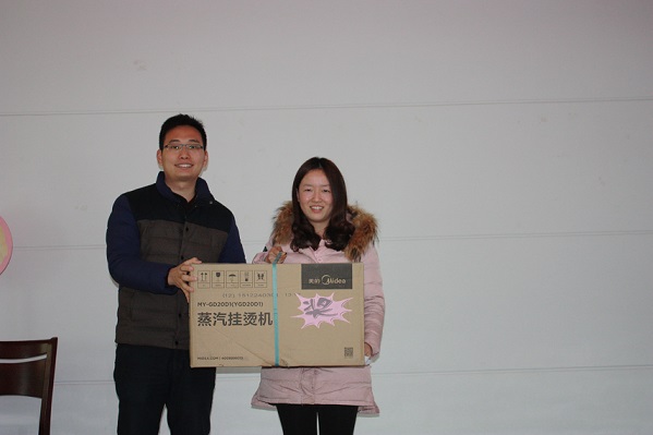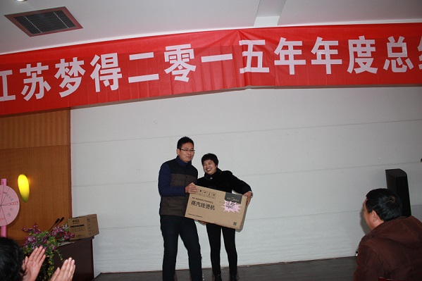 随後 ,大會現場(chǎng)的抽獎活動(dòng)和同時進行的各個部門員工表演節目,現場(chǎng)氣氛十分熱烈!華爲4G智能手機,全自動(dòng)豆漿機,蒸汽挂燙機,空氣淨化器,吸塵(chén)器,電磁爐炒鍋,堅果大禮盒,今年還有我們公司顧問李萬紅老師帶(dài)來的3份特别獎項--猴年紀念币等大獎均被幸運員工抽取,並(bìng)由杭總,貢總親自頒(bān)發!所有與會員工都是滿載而歸,大會在一片歡快的氛圍中結束。
