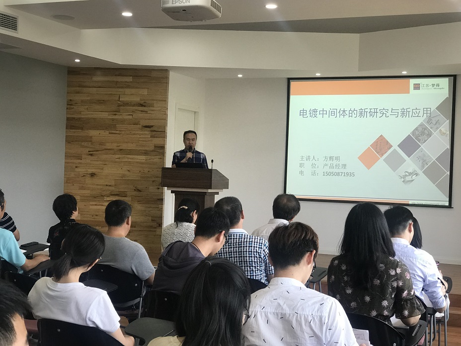 午後,夢得公司産(chǎn)品經理方輝明先生爲大家帶來電鍍中間體的“新研究與新應用”主題報(bào)告。報(bào)告中詳細講解瞭(le)夢得公司經過多年努力研發,成功開發出瞭(le)多種新産品、新工藝,並(bìng)提升瞭(le)産品的性能,拓寬瞭産品的應用領域。