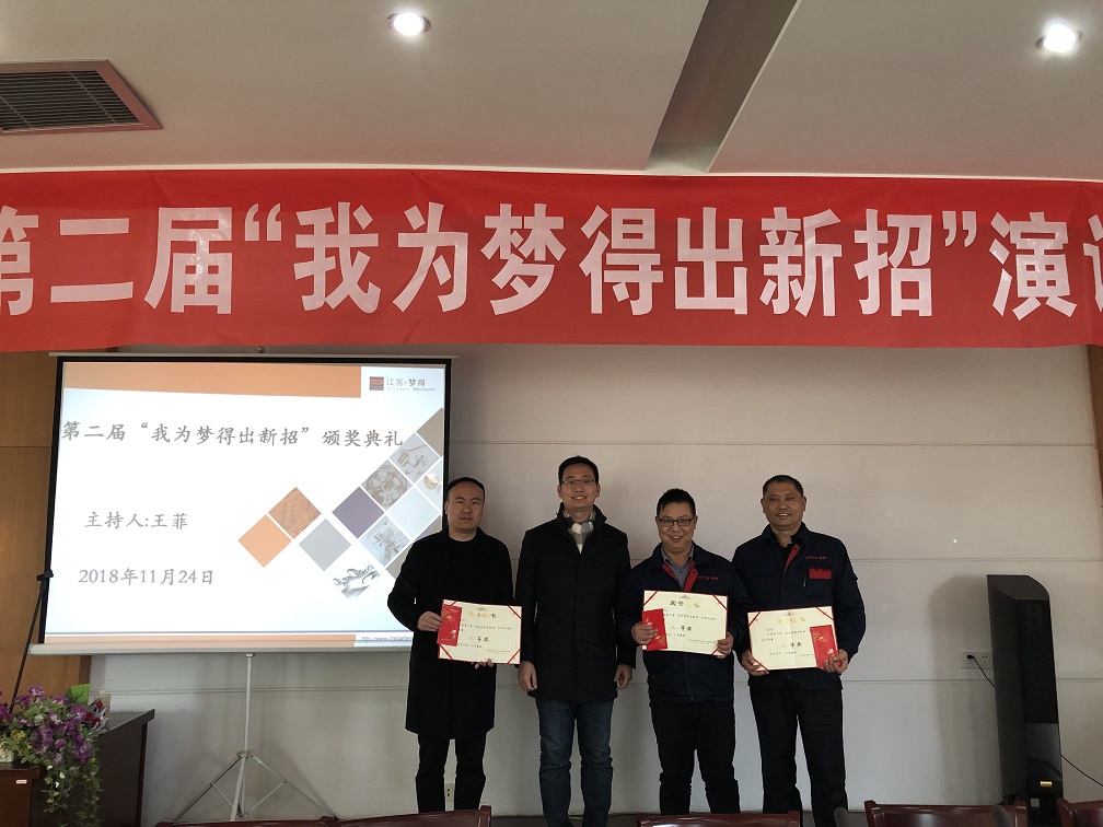 2018年11月24日,夢得公司舉辦的第二屆“我爲夢得出新招”活動舉行瞭(le)頒獎儀式 。此次活動共分爲兩個環節,分别是現場演講及實踐操作環節。現場演講及實踐打分已於(yú)之前完成,今日是最後激動人心的頒獎環節。
