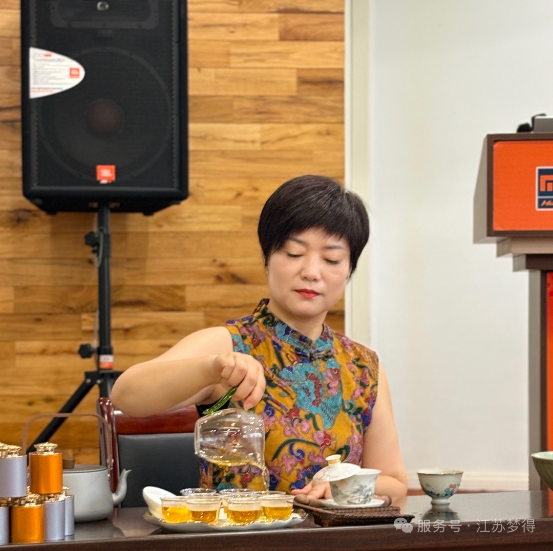 講解過程中,曾凡梅經理巧妙地将理論知識與現場茶藝表演交織融合。伴随著(zhe)優雅的樂聲,茶藝師以行雲流水的動作完成溫杯 、投茶、注水、出湯等步驟,茶湯傾瀉的瞬間,袅袅茶香與生動講解相得益彰,讓我們在聆聽千年茶史的同時,通過視覺、嗅覺、味覺多維度感受茶道之美,真正實現瞭(le)知識傳遞與沉浸體驗的完美結合。