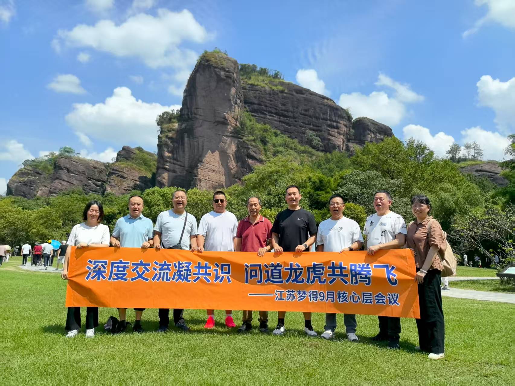 秋意漸濃,激情不減。在這豐收的季節裏,江蘇夢得新材料科技有限公司核心層管理團隊在杭冬良董事長的帶領下,奔赴江西,開啓瞭(le)一場以“深度交流凝共識,問道龍虎共騰飛”爲主題的9月核心層會議之旅。這是一次跨越地域的交流,一次凝聚共識的對話,更是一次團隊精神與文化底蘊的深度融合。從客戶拜訪到會議研讨,從文化探源到自然勝境,每一步都踏出瞭(le)江蘇夢得的堅定與自信,每一刻都洋溢著(zhe)團隊的熱情與豪情。